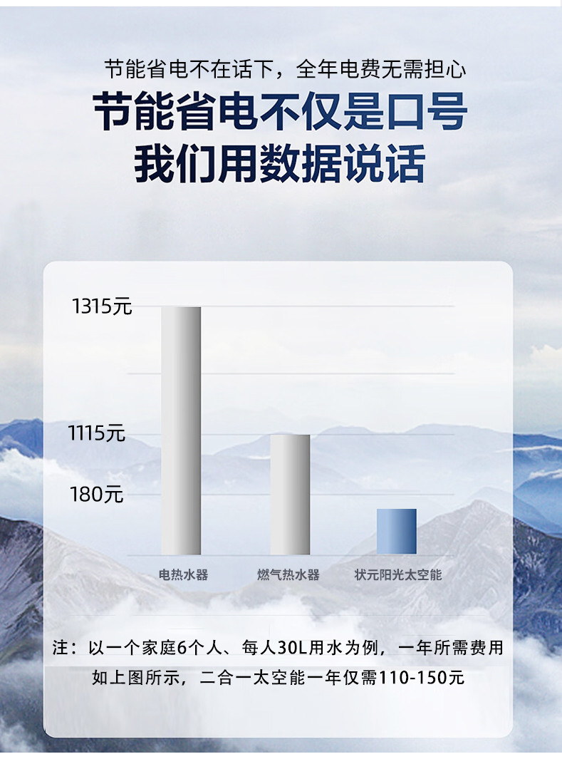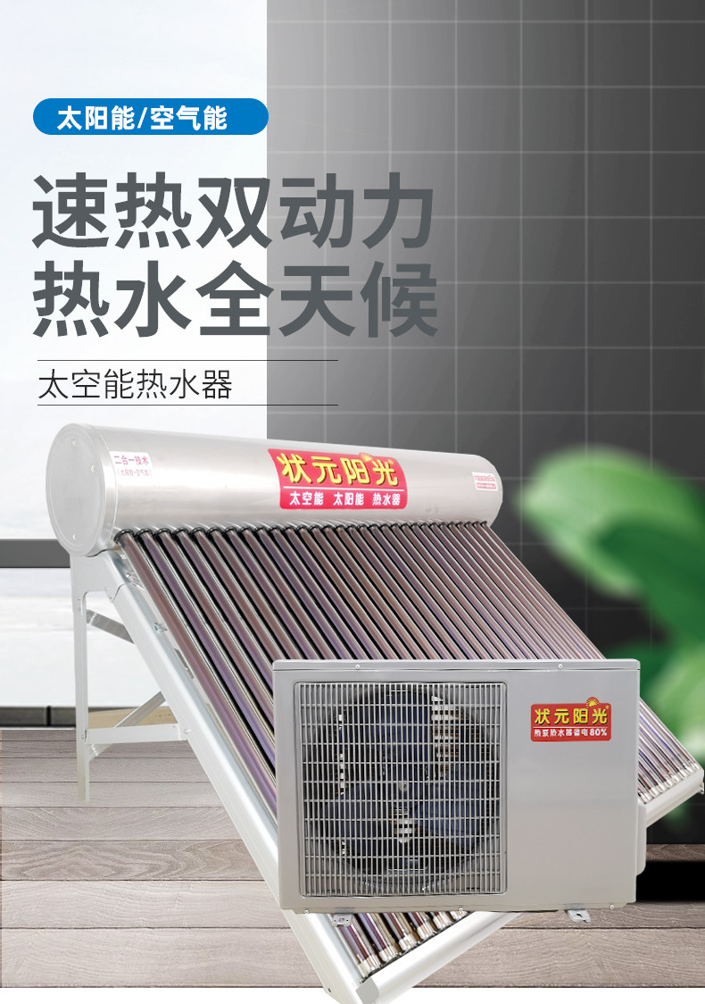 狀元陽(yáng)光 太空能熱水器太陽(yáng)能熱水器空氣能熱水器家用光電兩用一體機(jī)二合一300升大容量包安裝全國(guó)聯(lián)保